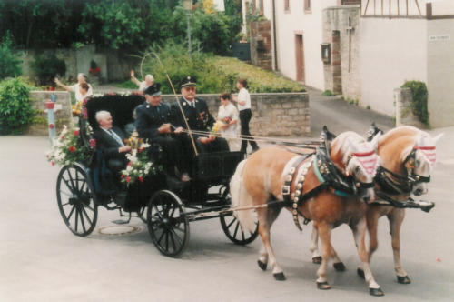 aufpolierten Spritzenwagen mit, der nach der Gründung im Jahre 1901 von der Gemeinde